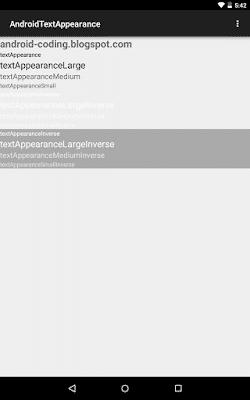 1 | <LinearLayout xmlns:android="http://schemas.android.com/apk/res/android"<br /> xmlns:instruments="http://schemas.android.com/instruments"<br /> android:layout_width="match_parent"<br /> android:layout_height="match_parent"<br /> android:orientation="vertical"<br /> instruments:context="com.instance.androidtextappearance.MainActivity" ><br /><br /> <TextView<br /> android:layout_width="wrap_content"<br /> android:layout_height="wrap_content"<br /> android:textual content="android-coding.blogspot.com"<br /> android:textSize="24dp"<br /> android:textStyle="daring" /><br /> <TextView<br /> android:layout_width="match_parent"<br /> android:layout_height="wrap_content"<br /> android:textual content="textAppearance"<br /> android:textAppearance="?android:textAppearance" /><br /> <TextView<br /> android:layout_width="match_parent"<br /> android:layout_height="wrap_content"<br /> android:textual content="textAppearanceLarge"<br /> android:textAppearance="?android:textAppearanceLarge" /><br /> <TextView<br /> android:layout_width="match_parent"<br /> android:layout_height="wrap_content"<br /> android:textual content="textAppearanceMedium"<br /> android:textAppearance="?android:textAppearanceMedium" /><br /> <TextView<br /> android:layout_width="match_parent"<br /> android:layout_height="wrap_content"<br /> android:textual content="textAppearanceSmall"<br /> android:textAppearance="?android:textAppearanceSmall" /><br /> <br /> <TextView<br /> android:layout_width="match_parent"<br /> android:layout_height="wrap_content"<br /> android:textual content="textAppearanceInverse"<br /> android:textAppearance="?android:textAppearanceInverse" /><br /> <TextView<br /> android:layout_width="match_parent"<br /> android:layout_height="wrap_content"<br /> android:textual content="textAppearanceLargeInverse"<br /> android:textAppearance="?android:textAppearanceLargeInverse" /><br /> <TextView<br /> android:layout_width="match_parent"<br /> android:layout_height="wrap_content"<br /> android:textual content="textAppearanceMediumInverse"<br /> android:textAppearance="?android:textAppearanceMediumInverse" /><br /> <TextView<br /> android:layout_width="match_parent"<br /> android:layout_height="wrap_content"<br /> android:textual content="textAppearanceSmallInverse"<br /> android:textAppearance="?android:textAppearanceSmallInverse" /><br /><br /> <TextView<br /> android:layout_width="match_parent"<br /> android:layout_height="wrap_content"<br /> android:background="@android:colour/darker_gray"<br /> android:textual content="textAppearanceInverse"<br /> android:textAppearance="?android:textAppearanceInverse" /><br /> <TextView<br /> android:layout_width="match_parent"<br /> android:layout_height="wrap_content"<br /> android:background="@android:colour/darker_gray"<br /> android:textual content="textAppearanceLargeInverse"<br /> android:textAppearance="?android:textAppearanceLargeInverse" /><br /> <TextView<br /> android:layout_width="match_parent"<br /> android:layout_height="wrap_content"<br /> android:background="@android:colour/darker_gray"<br /> android:textual content="textAppearanceMediumInverse"<br /> android:textAppearance="?android:textAppearanceMediumInverse" /><br /> <TextView<br /> android:layout_width="match_parent"<br /> android:layout_height="wrap_content"<br /> android:background="@android:colour/darker_gray"<br /> android:textual content="textAppearanceSmallInverse"<br /> android:textAppearance="?android:textAppearanceSmallInverse" /><br /> <br /></LinearLayout><br /><br /> |