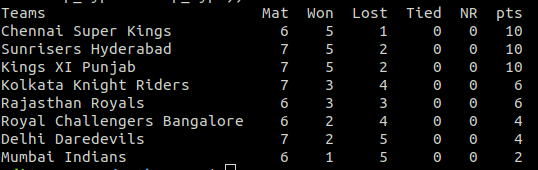 This screenshots or just for better understanding though the IPL status keep changing output will also change. For exact output copy the code above and try on your own once, it will be fun.